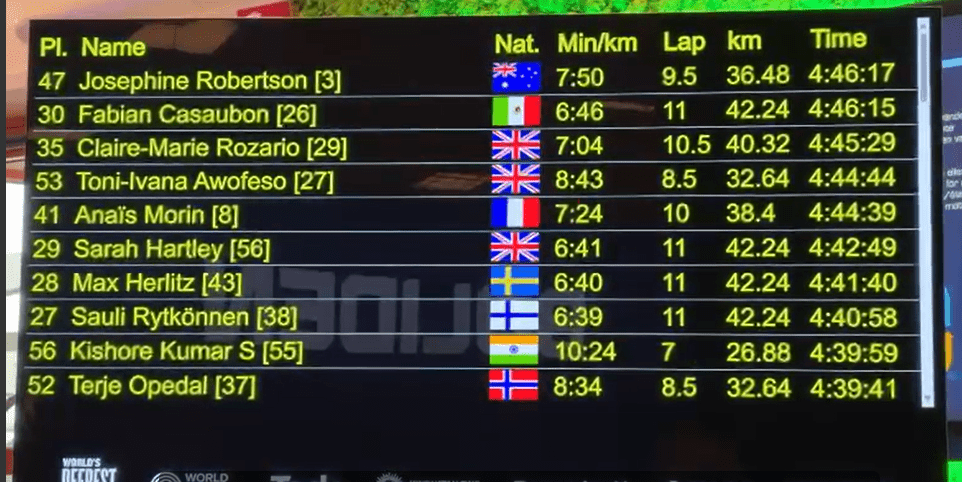 El desafío físico y mental fue considerable. La carrera se desarrolló en un circuito de casi dos kilómetros dentro de los túneles de la mina en 11 vueltas. Su equipamiento de protección personal incluyó un casco, linterna, camisa y short de seguridad con reflectores, así como un dispositivo GPS, habitual en el equipo de los mineros. Además, prescindió de audífonos, eliminando la posibilidad de música como distracción.