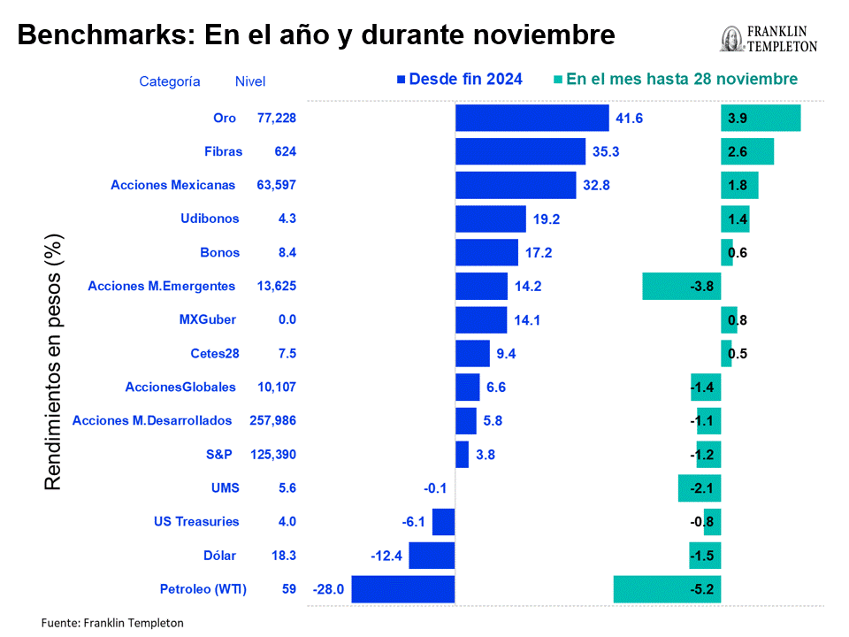 Noviembre fue más de lo mismo que hemos visto durante 2025: los activos locales y el oro fueron los únicos con rendimientos positivos.