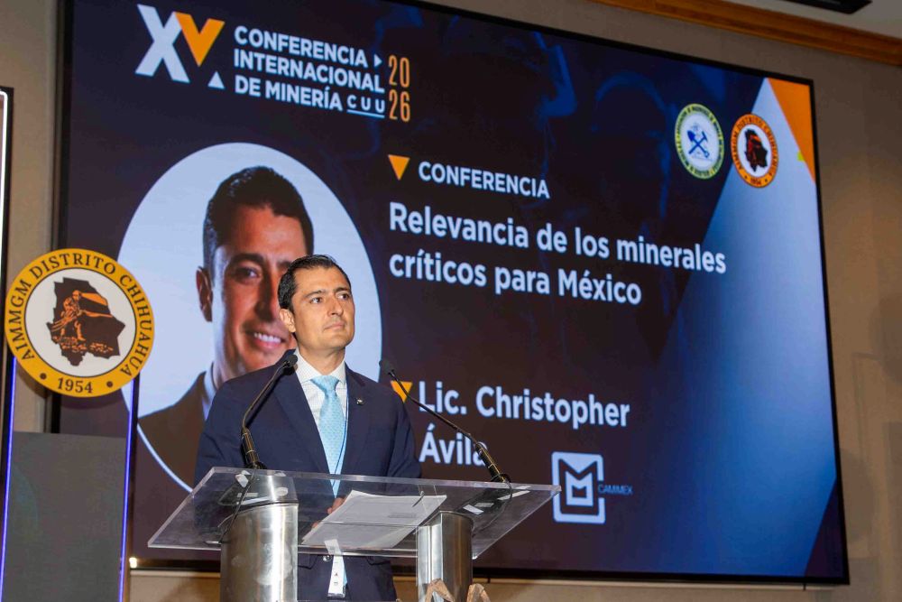 Chihuahua, Chih., 23 de abril de 2026.– En el marco de la XV Conferencia Internacional de Minería Chihuahua 2026, organizada por la AIMMGM Distrito Chihuahua, Christopher Ávila Mier, presidente de la Comisión de Enlace Legislativo de la Cámara Minera de México (CAMIMEX), presentó la conferencia “Relevancia de los minerales críticos para México: predefiniendo el panorama del sector minero en una nueva geopolítica”.